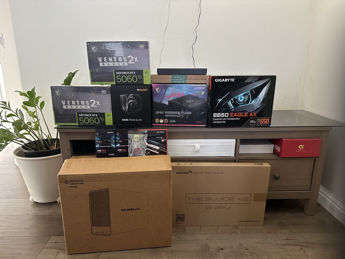 The result? A better build than I originally planned: 4× RTX 5060Ti (64GB VRAM), $5,528 total, all new hardware, uniform components, and optimized power consumption.